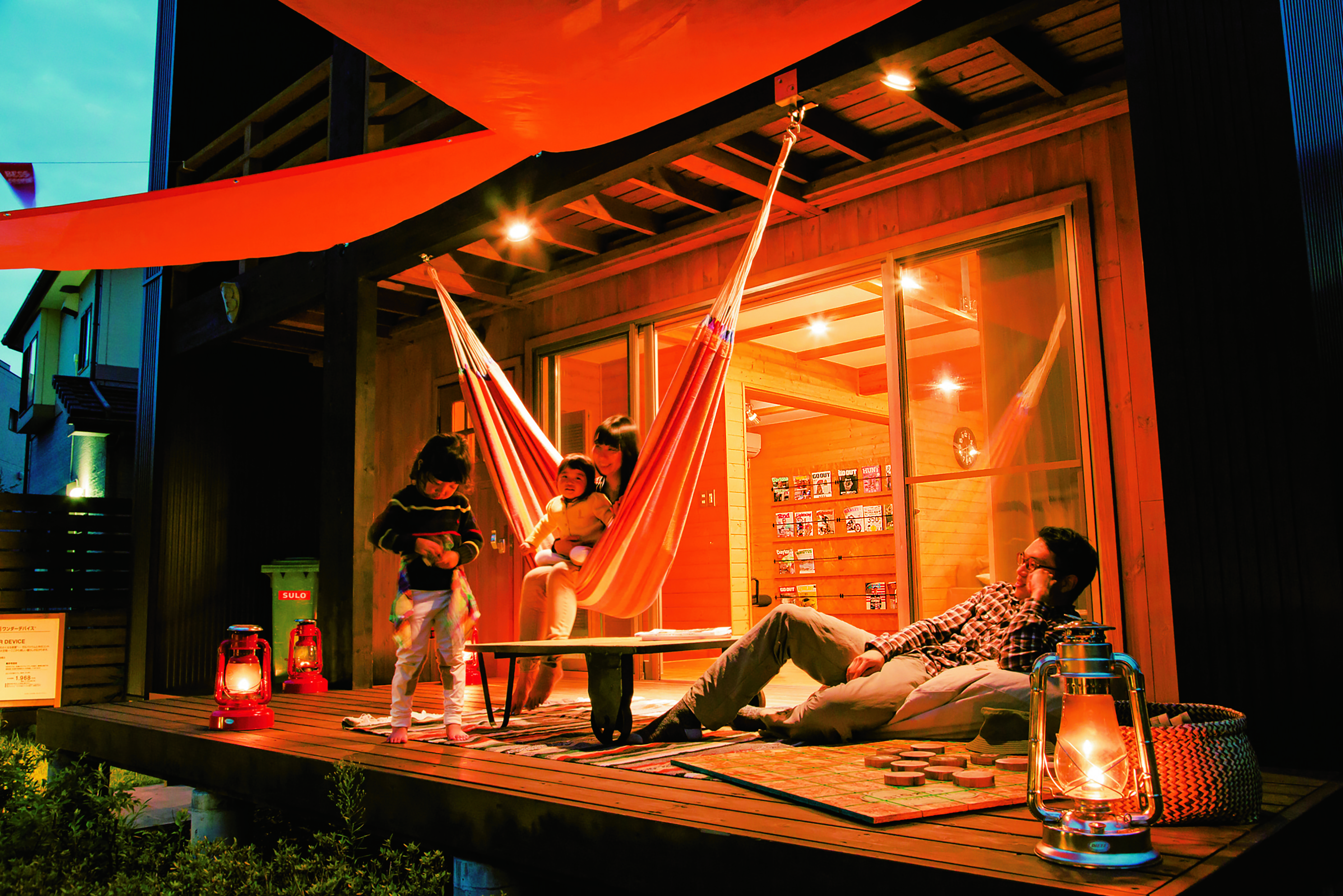 新モデル”間貫けのハコ”で貸切体験ができます。デッキや庭でBBQをしたり、